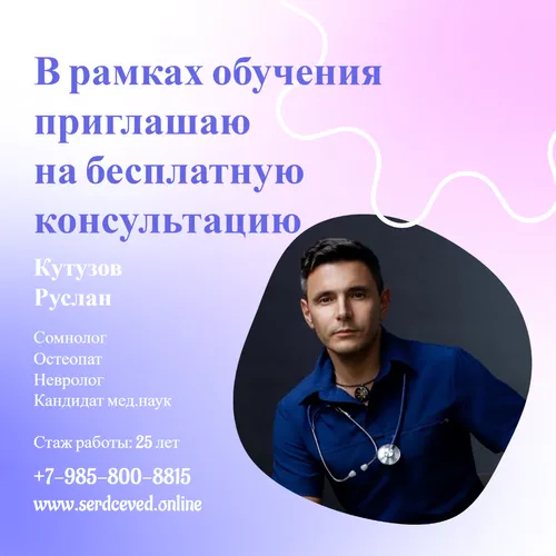 СердцеВед® - медицина – в лице доктора Кутузова Руслана Рафаиловича представляет комплексную консультацию взаимосвязанных трёх направлений. Решение по каждой отдельной проблеме закрывается тремя китами СОН (сомнолог+остеопат+невролог)